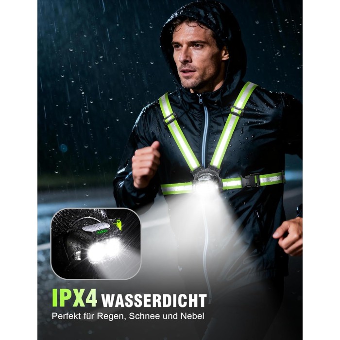 - 【IPX4 Wasserdicht für Mehrere Szenen】Mit einer IPX4-Wasserdichtigkeitsbewertung und einem robusten Design weist dieses Running Light Regen ab und ist zuverlässig für eine Vielzahl von Szenen, von Morgendämmerungsläufen bis zu nächtlichen Fahrten. Es ist nicht nur eine ausgezeichnete Reflektor Weste zum Gehen und Laufen, sondern auch eine großartige Wahl für Camping, Radfahren, Angeln, Wandern und Notfallkits
