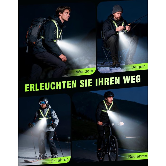 - 【Doppelriemen-Design & Verstellbare Passform】Im Gegensatz zu den meisten Modellen mit nur einem Gurt bietet unser symmetrisches Doppelgurtsystem mehr Stabilität und eine individuell anpassbare Passform. Die Hüftgurte des Licht Joggen von 80-130cm und die Schulterriemen von 30-60cm verstellbar, um eine perfekte Passform für alle Körpertypen zu gewährleisten. Im Gegensatz zu herkömmlichen Stirnlampe bietet dieses Design angenehmen Tragekomfort ohne Druckstellen, egal wie lange Sie die tragen.