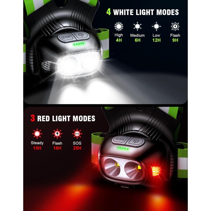 - 【7 Light Modes & Multi-Angle】The running torch for runners offers 7 lighting modes, including 4 white light settings (High/ Medium/ Low/ Flash) and 3 red light settings (Steady/ Flash/ SOS), making it easy to meet the demands of various scenarios. The front running light supports 45° multi-angle adjustment(15°/ 30°/ 45°), allowing precise control of the lighting angle to cover both near and far distances.